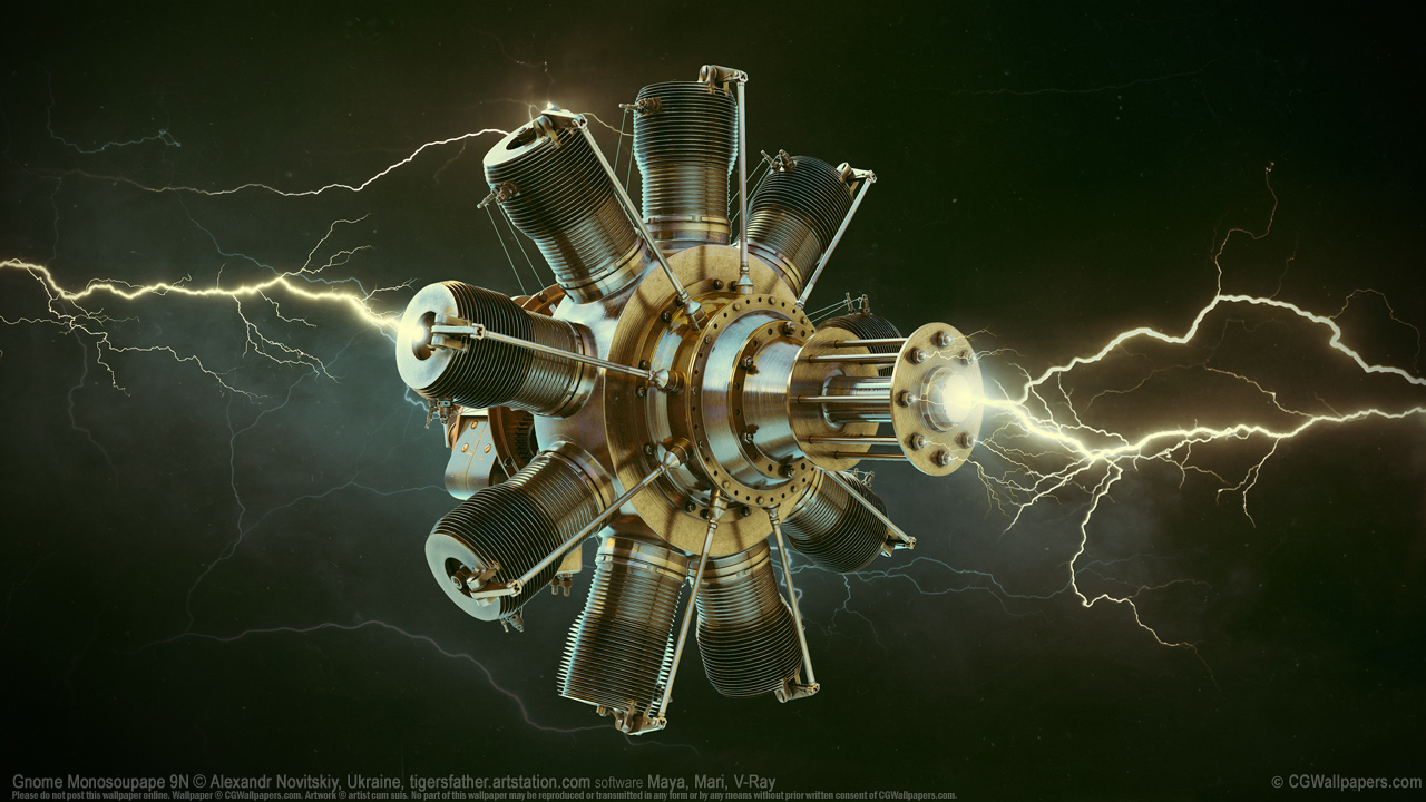 Gnome Monosoupape 9N © Alexandr Novitskiy, Ukraine software Maya, Mari, V-Ray
